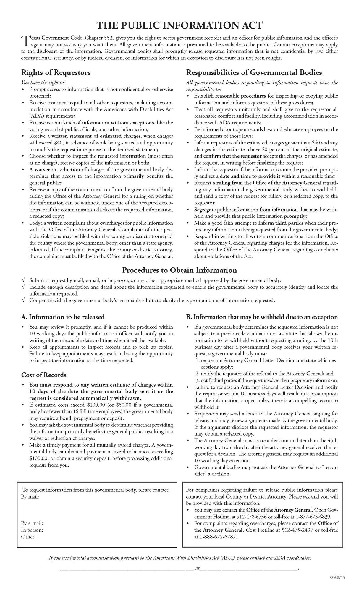 By the City Council Resolution 2021.2.2, the City of Flatonia has designated the form below as the Public Information Request form and shall be submitted to: